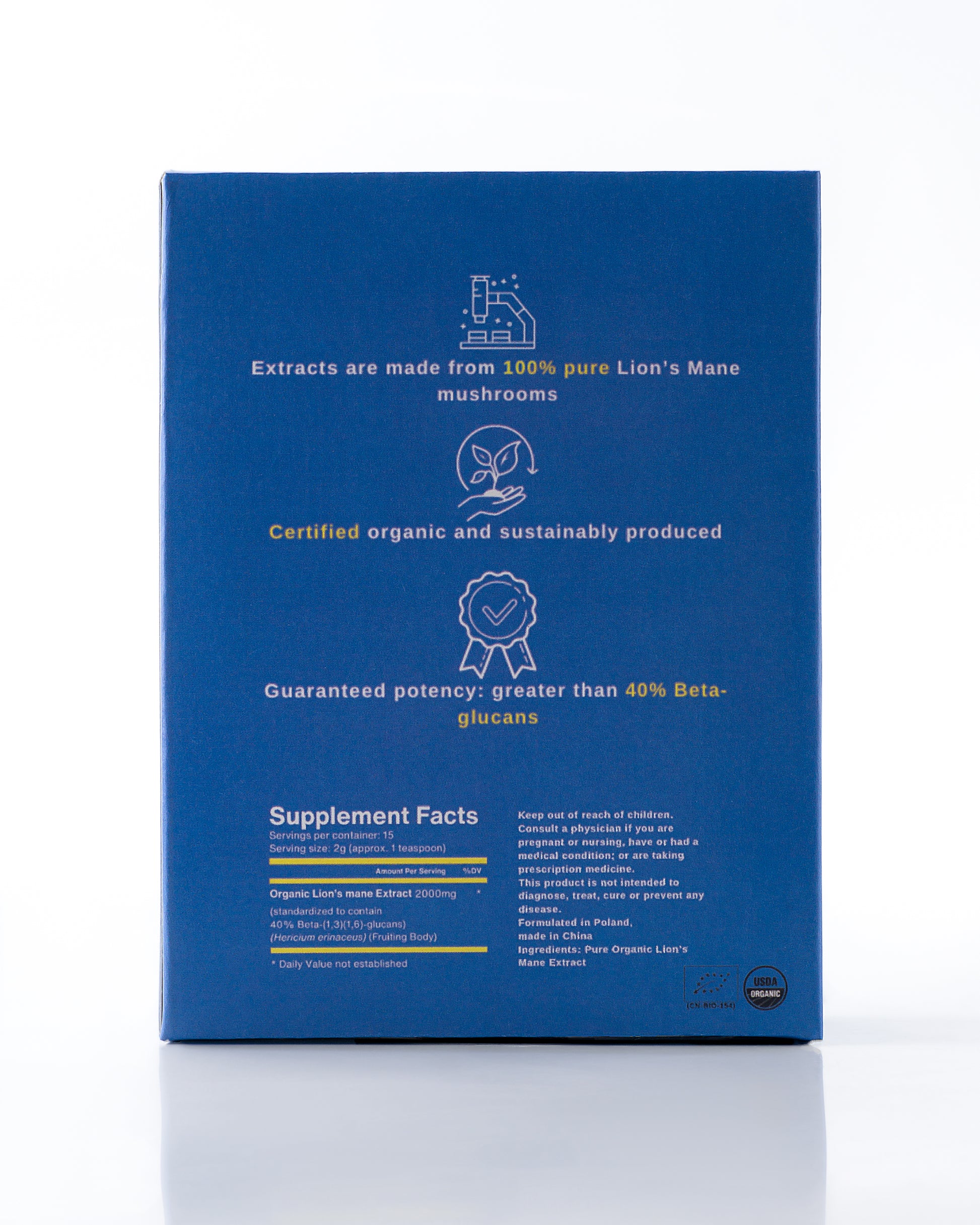 Elevate your cognitive game with our Lion's Mane 100% Organic Powder 🧠 🌱 from fruiting body - the highest in nutrients part of the mushroom, featuring an unmatched 26:1 concentration ratio - the highest on the market today 🏆. This means you're getting the purest, most potent extract available, delivering maximum benefits in every spoon.